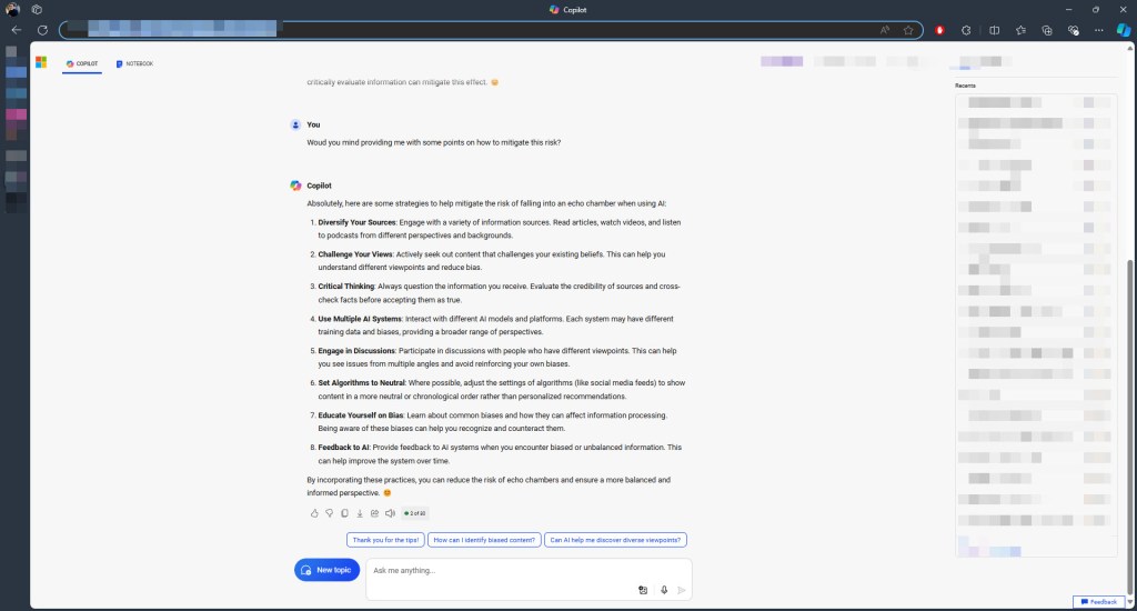 “Would you mind expanding a bit more on your points on how to mitigate the risk of AI echo chambers?”